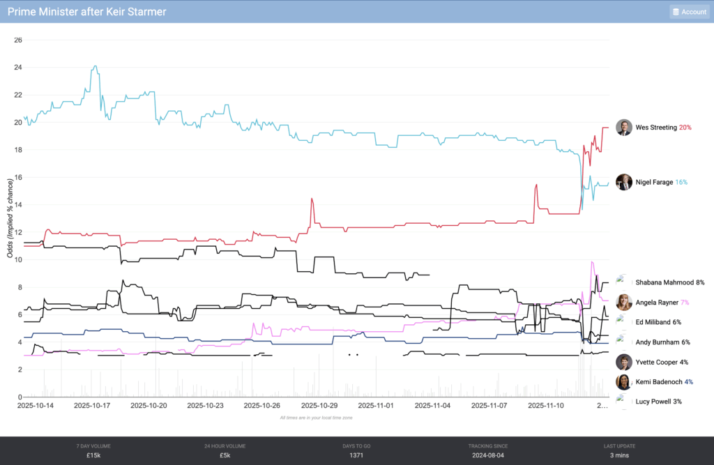 Streeting overtakes Farage as the favourite to be next PM – politicalbetting.com